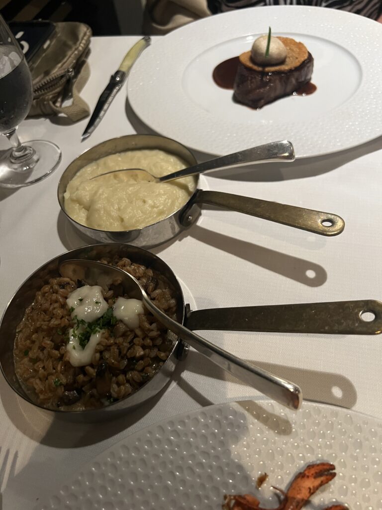 Lane: Scallop Gnocchi, Onion Soup, Lobster Thermidor, Mushroom Risotto, Stuffed Cream Puffs