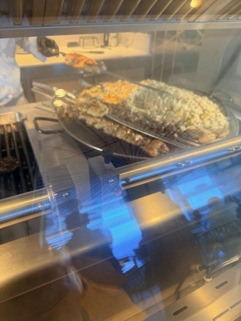 Couple of meal photos — everyday in The Waves Grill there is something special being prepared. On Sunday it was beef and chicken on a sword, or they called it Mixed Grill on a Sword. The other photo is Jackie’s Mac and Cheese at dinner. Promise to do a better job of menu and meal photos.