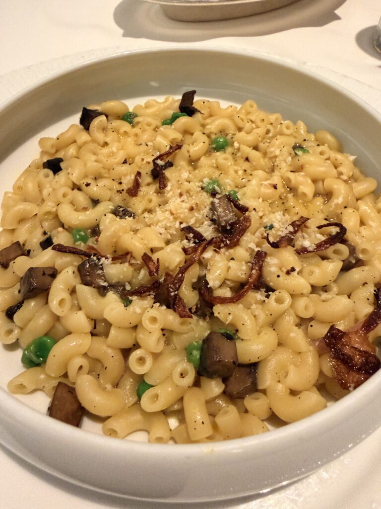 I must admit this was a strange Mac and cheese. I think the chef forgot the cheese.,